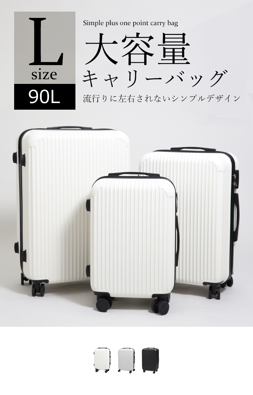 スーツケース キャリーケース キャリーバッグ Lサイズ 90L 軽量 7-10泊用 海外旅行 国内旅行 シンプル 男女兼用