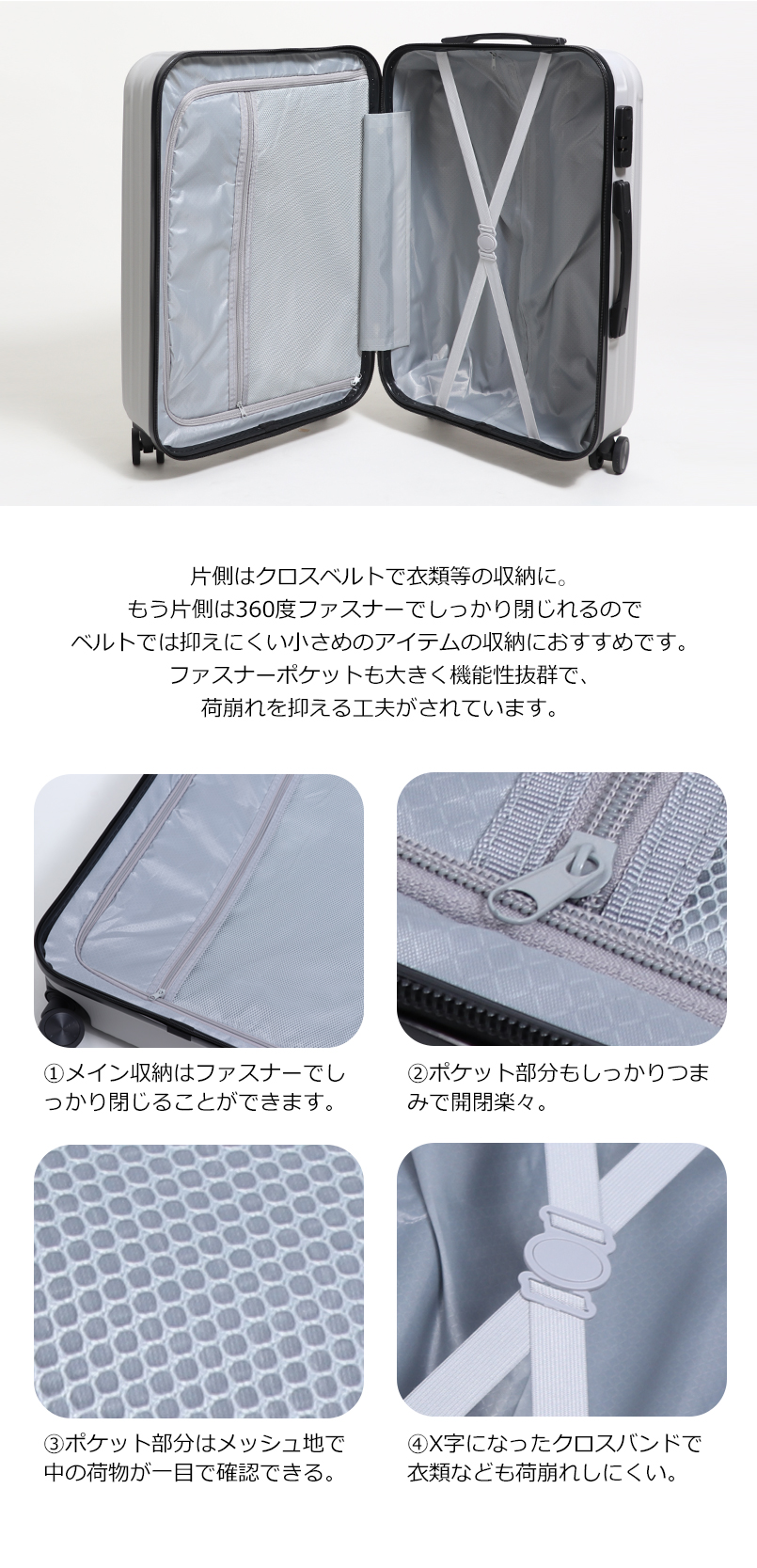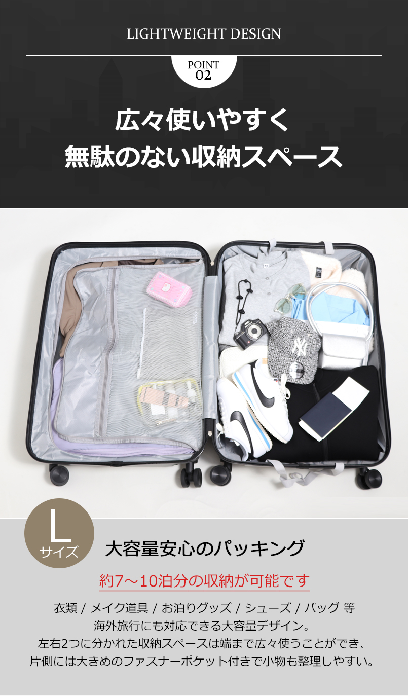 無駄のない広々とした収納スペースを確保しており、高いパッキング力を保持。
