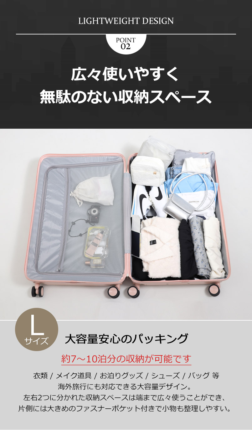 無駄のない広々とした収納スペースを確保しており、高いパッキング力を保持。