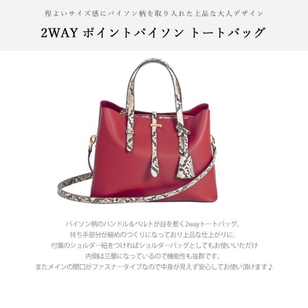 商品名 2way トートバッグ トート パイソン柄 ベルト ショルダーバッグ レディース ショルダー パイソン 無地 上品 女性 可愛い かわいい 肩掛け 斜め掛け シンプル シック 三層 チャーム付き