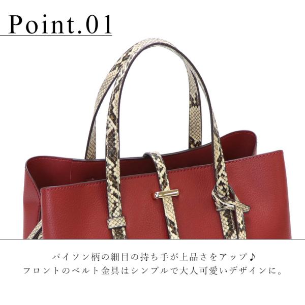 パイソン柄のハンドル&ベルトが目を惹く2wayトートバッグ。