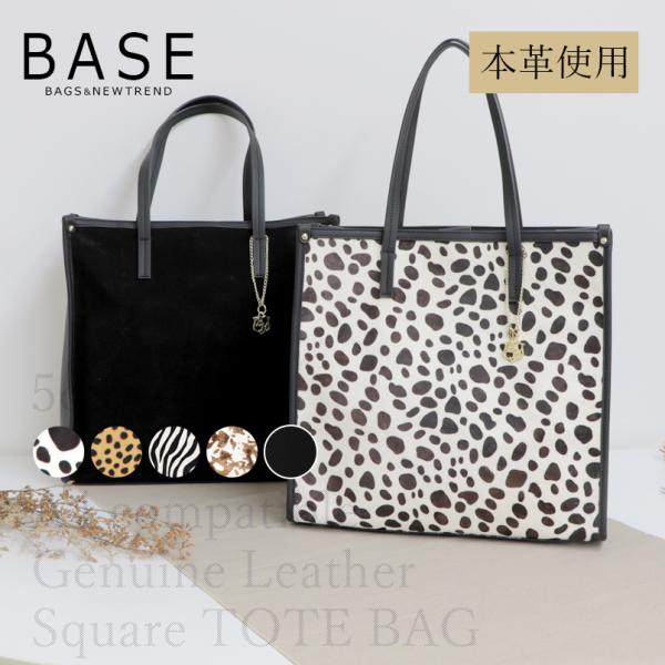 BASE ベース 公式 トートバッグ シンプル 本革 ハラコ レザー A4 A4サイズ対応 レオパード スクエア アニマル 柄 上品 お洒落 女性 大人 レディース 秋 冬 BAG