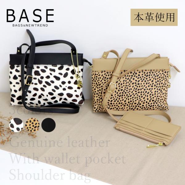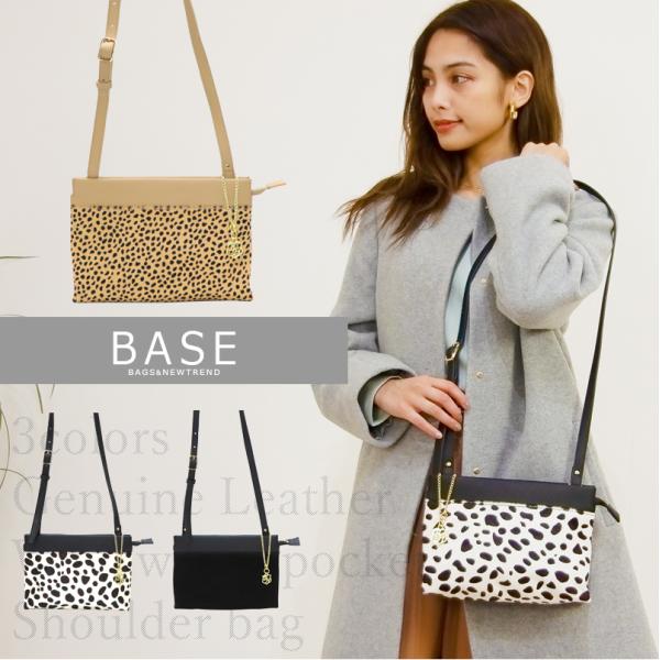 BASE ベース 公式 ショルダーバッグ シンプル 本革 ハラコ レザー ショルダー お財布 カードポケット レオパード アニマル 柄 上品 女性 大人 レディース 軽量