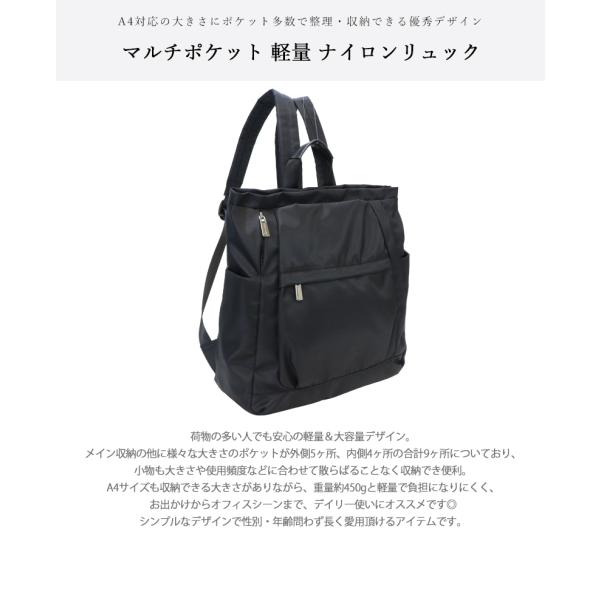 商品名 A4対応 軽量 ナイロン リュックサック リュック バッグ A4 ポケット 無地 通勤 通学 大容量 旅行 レディース 女性 ユニセックス 男女兼用 シンプル 上品 デイリー