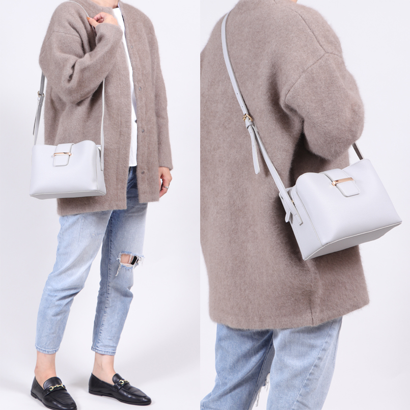 ショルダーの長さは5段階調整が可能で、コーデやお好みで斜め掛けでの使用もOK。