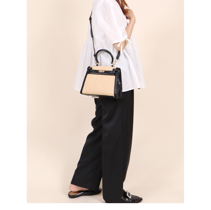 かっちりとしたシルエットにかご素材を組み合わせた季節感のあるトートバッグ。