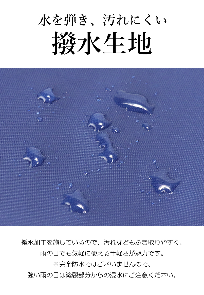 撥水加工のナイロン素材を使用しており、雨の日でも安心◎