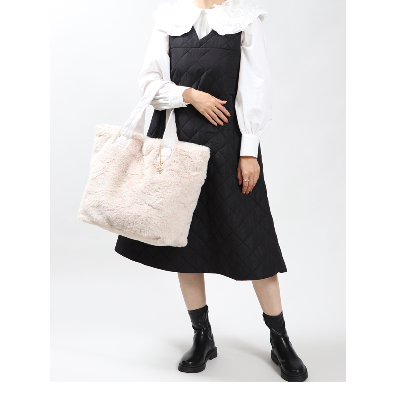 A4サイズが余裕で収まる大きめのサイズ感に、バッグ全体に贅沢にファーを使用したふわふわのシルエットが魅力的なトートバッグ。