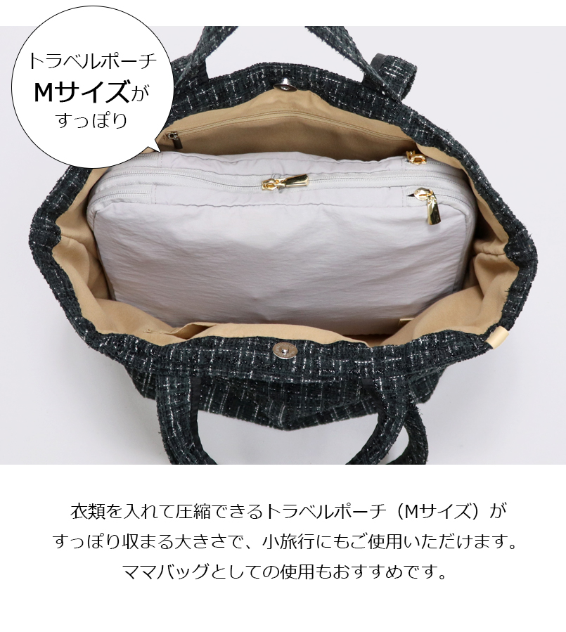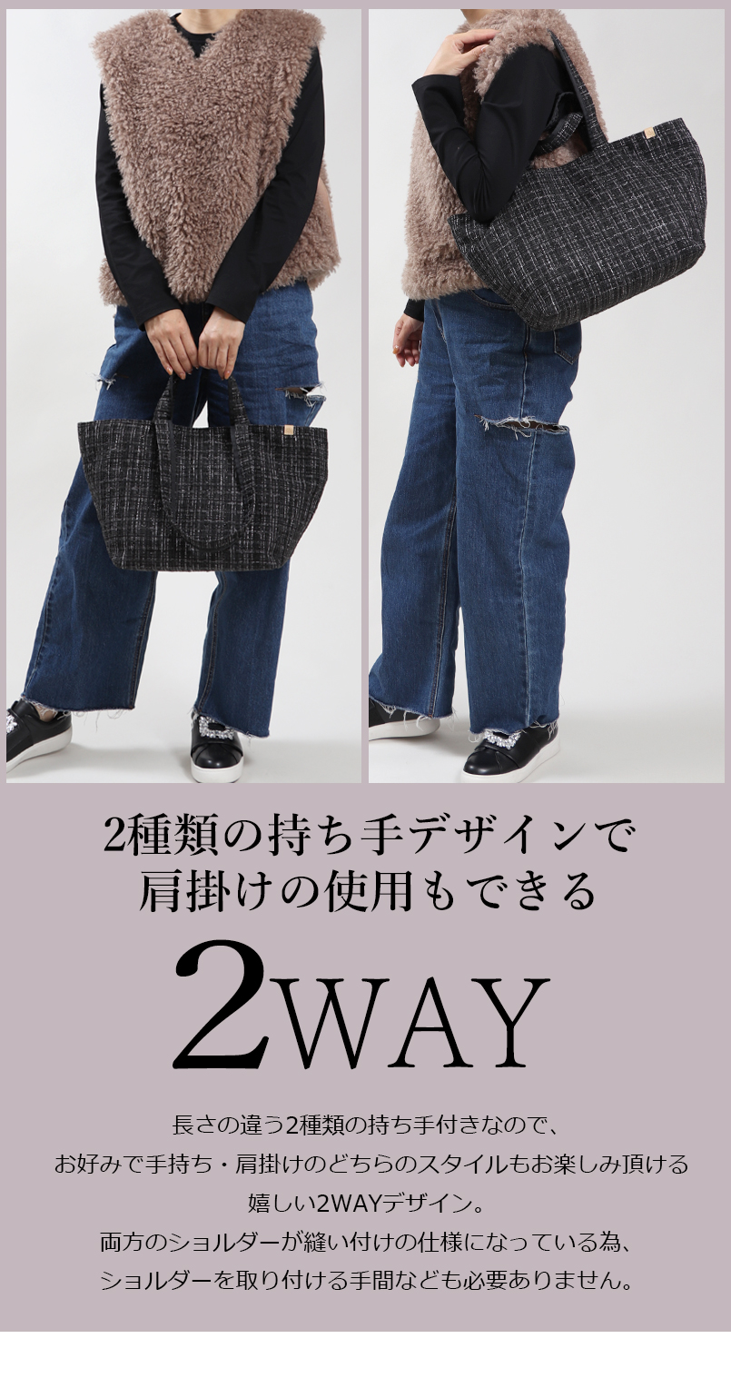 商品名 ツイード トートバッグ レディース バッグ きれいめ 大人 手提げ 大きめ トート かわいい 可愛い 軽量 おしゃれ 大容量 ママバッグ かばん 旅行 高見え 船形 肩掛け 秋冬 秋 冬