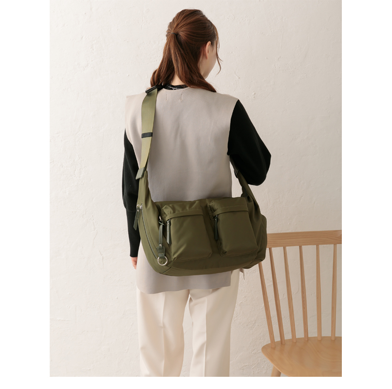 フロントのダブルポケットデザインがお洒落なショルダーバッグ。