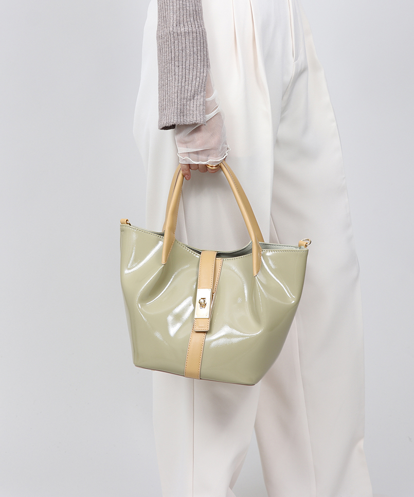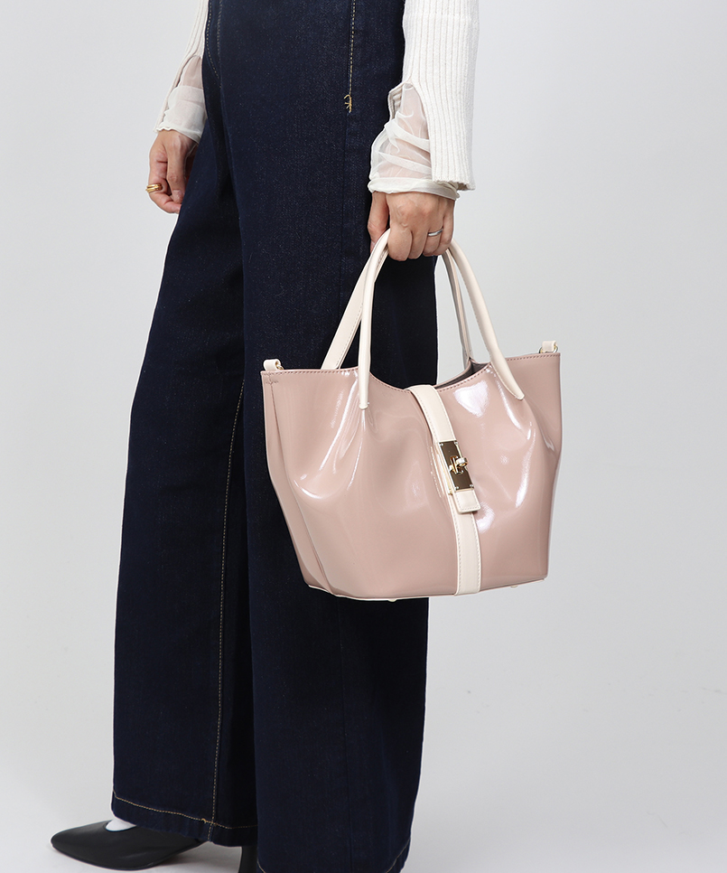 光沢&シボ感のある高見えの合皮を使用したトートバッグ。