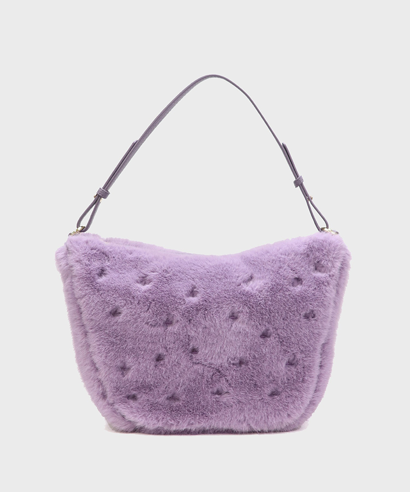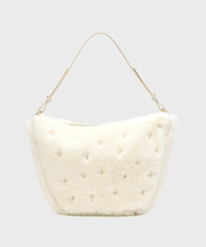 刺しゅうデザインがポイントになった、ふわふわファーの上品なバッグ。