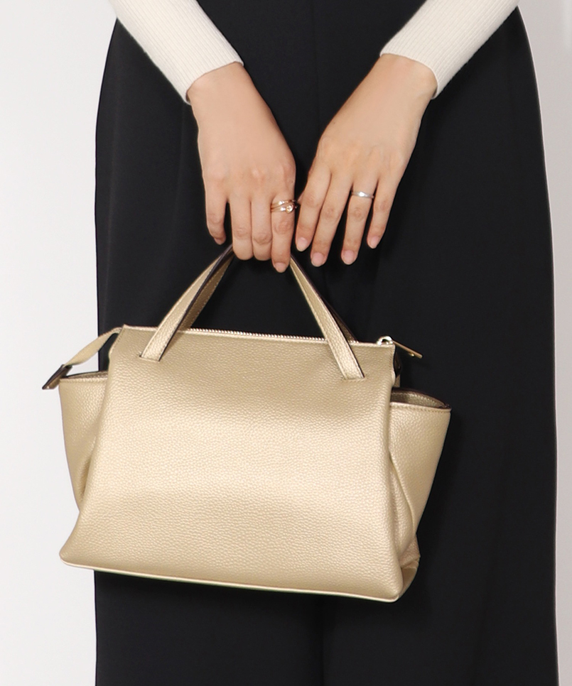幅広のマチ付きで収納力抜群のハンドバッグ。