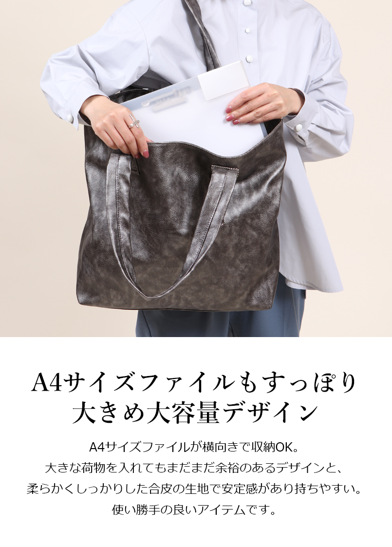 商品名 トートバッグ トート レディース 大きめ BAG A4 A4サイズ対応 通勤 通学 シボ 大容量 収納力 肩掛け シンプル 無地 旅行 お泊り ママバッグ マザーズバッグ フェイクレザー シボ感 バイカラー デイリー お出かけ ポケット