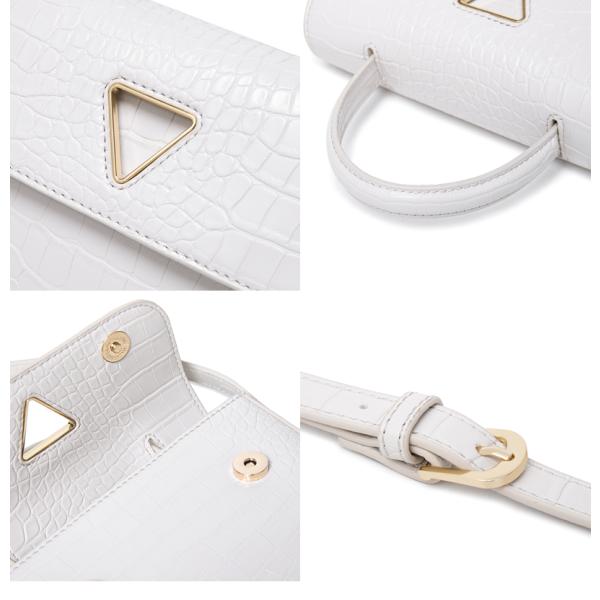 商品名 ショルダーバッグ ハンドバッグ ショルダー 2way 三角 トライアングル クロコ型押し レディース プチプラ シンプル 軽量 小さめ コンパクト フラップ 上品 お洒落 女性 通勤 通学 パーティー 斜め掛け