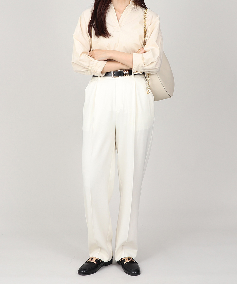 デイリー使いはもちろん、オフィスコーデにも使いやすいキレイめスラックス。