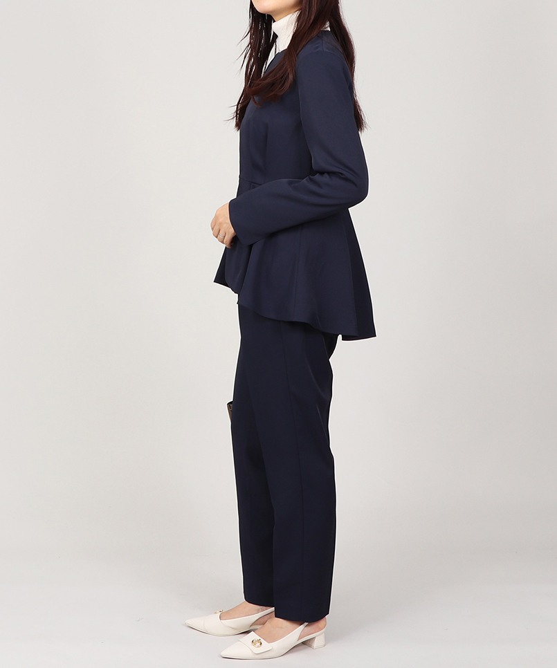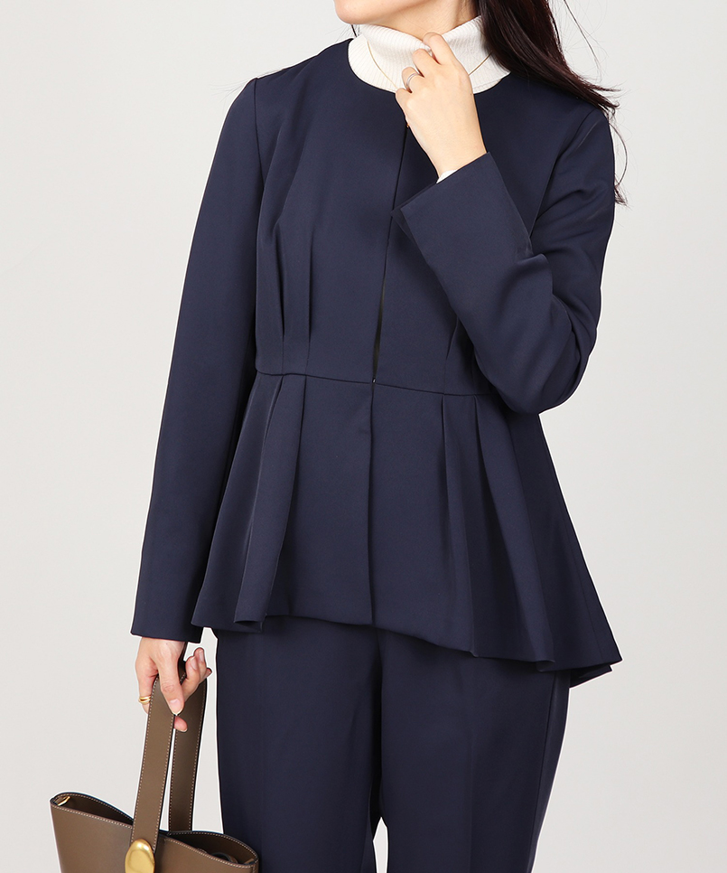 ・お尻が隠れるよう後ろ身頃にかけて長く設計されたペプラムシルエット。