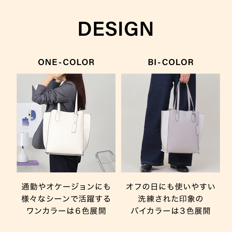 A4サイズ対応でお出かけ、通勤・通学やフォーマルなシーンにもオススメなトートバッグ。