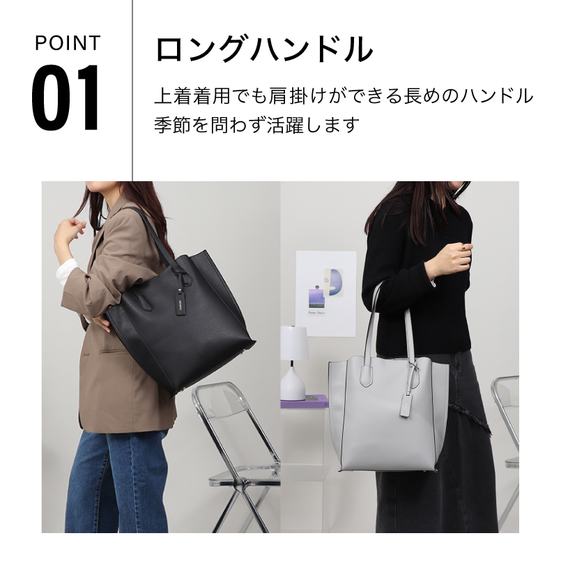 ・ロングショルダーなのでアウターを着ていても肩にかけやすく移動が多い日でも持ちやすい◎