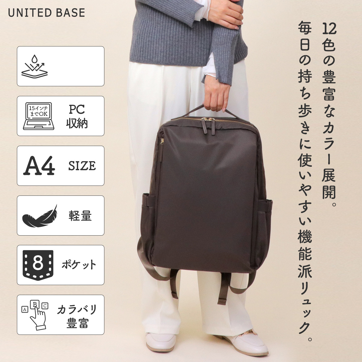 商品名 撥水 リュックサック リュック A4 A4サイズ対応 2way 無地 旅行 アウトドア レディース メンズ ユニセックス シンプル デイリー 大容量 収納力 ナイロン ナイロンリュック 軽量 男女兼用 通勤 通学