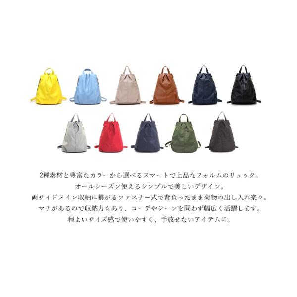 2種素材と豊富なカラーから選べるスマートで上品なフォルムのリュック。