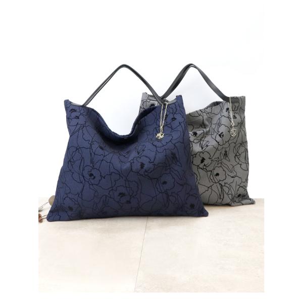 日本製 本革使用 花柄 大きめトートバッグ