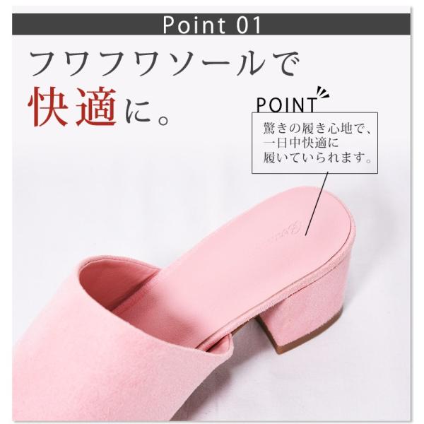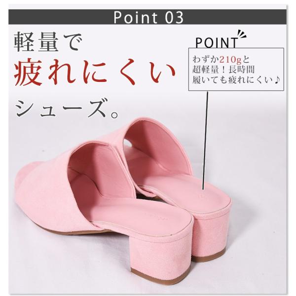 しっかり甲を包み込むサボのデザインと太めのスクエアヒールで安定感があり、