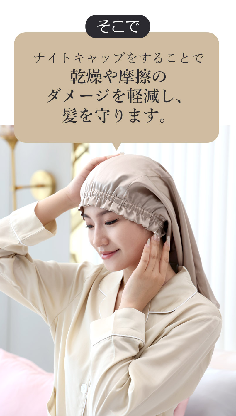被るだけの簡単ヘアケア、最高級A6ランクのシルクを100%使用したシルクナイトキャップ。