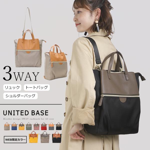 A4対応 2way 3way ナイロン リュック リュックサック ショルダー バイカラー 通勤 旅行 レディース a4 レディース シンプル ナチュラル 大容量 かわいい 可愛い