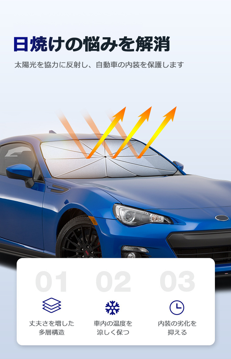 駐車中にはもちろん、車内で休憩する際のシミ・日焼け予防のご使用にもオススメ。