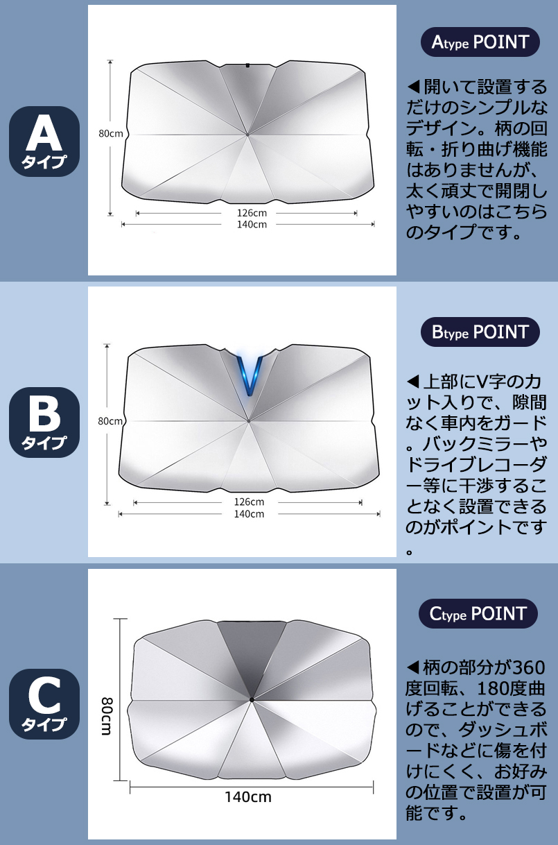 サンシェード 車 車用サンシェード 折り畳み 傘型 傘式 折りたたみ 日除け UVカット 紫外線カット 遮光 遮熱 取り付け簡単 プライバシー保護 暑さ対策 高温防止