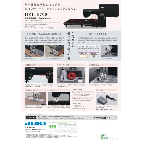 豪華3点の購入特典付き ミシン 本体 初心者 ジューキ JUKI HZL-B700 コンピュータミシン