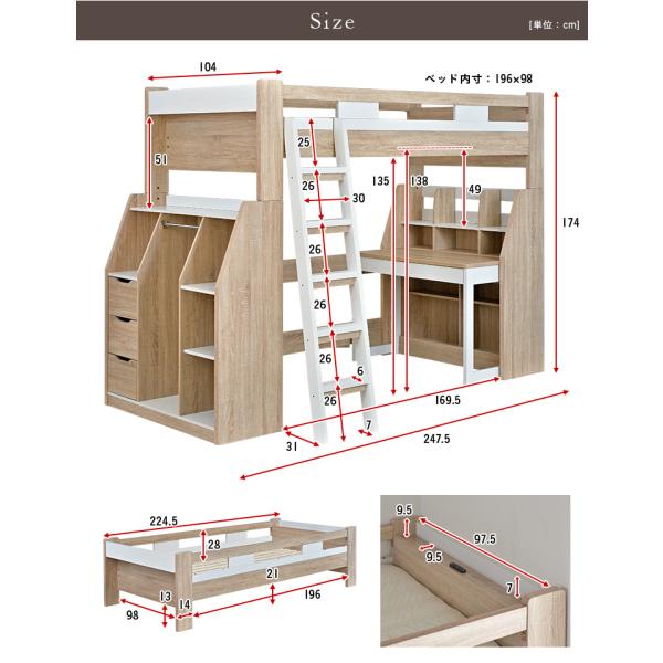 システムベッド 子供 大人用 分離使用可能 宮付き ロフトベッド システムベッドデスク デスクベッド 学習机 おしゃれ licorice(リコリス) 6色対応