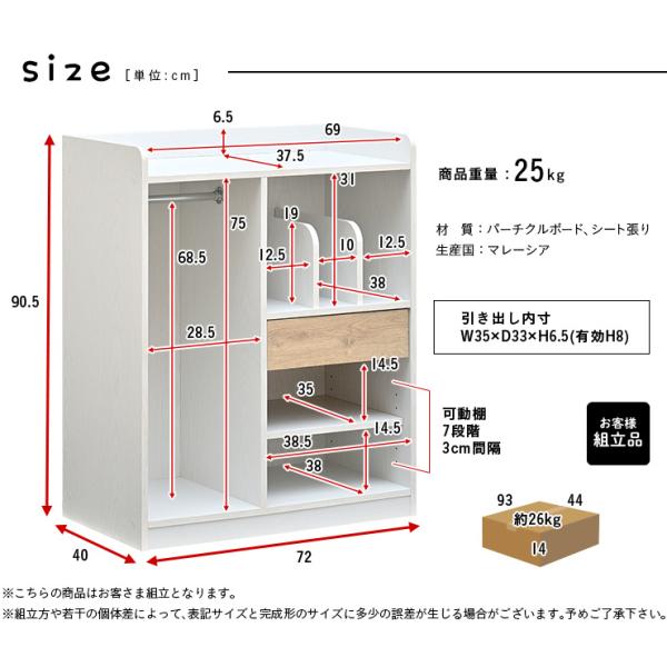 W72 x D40 x H90.5cm