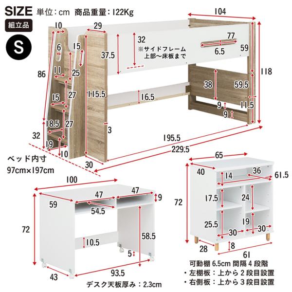 システムベット 分割可能 コンセント付き 宮付き はしご付き