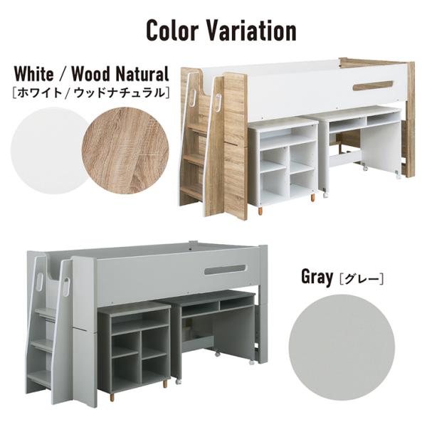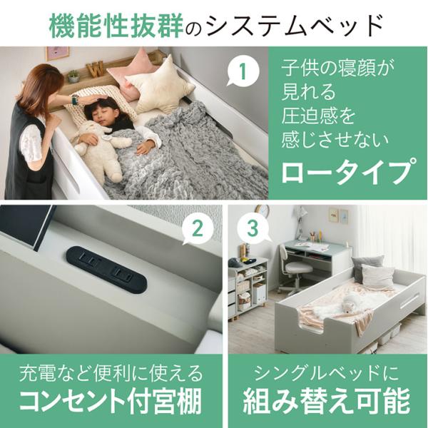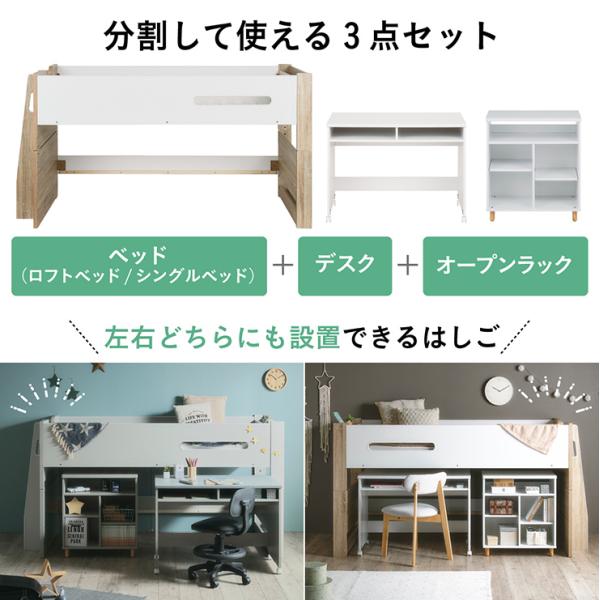 システムベッド 子供 大人用 ロフトベッド シングル ロータイプ 木製 キャスター付き 学習机 おしゃれ シンプル 北欧 Sesame(セサミ) 3点セット 2色対応