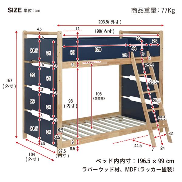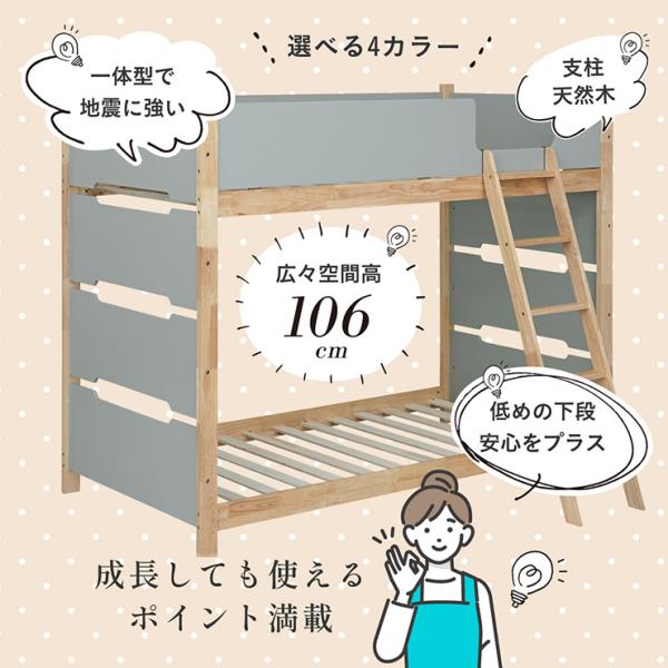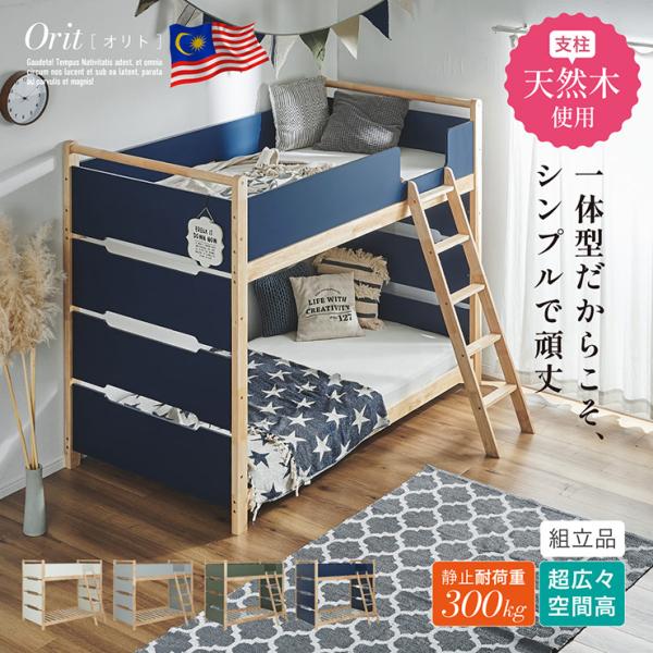 二段ベッド 大人用 子供 木製 天然木 おしゃれ 耐震仕様 Orit(オリト) 4色対応 一体型 頑丈 収納付き すのこベッド コンパクト シンプル 安全設計 はしご付き