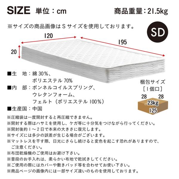 マットレス 高反発 セミダブルサイズ ボンネルコイルマットレス 厚さ20cm 敷布団 敷き布団 おしゃれ ベッドマットレス 硬め 圧縮梱包 Ciel(シエル)