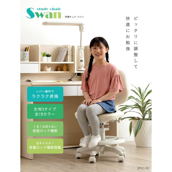 当店オリジナル 荷重ロック付きキャスター 学習椅子 学習チェア 学習チェアー 回転チェア 回転椅子 学習机用椅子 昇降式 子供 白 おしゃれ Swan(スワン) 全18色