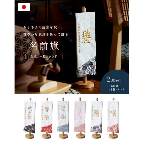 名前旗 名前札 男の子 女の子 ひな祭り 刺繍 節句 日本製 五月人形 こどもの日 初節句 端午の節句 桃の節句 雛まつり 雛祭り 白地/木製スタンド 名入れ無料