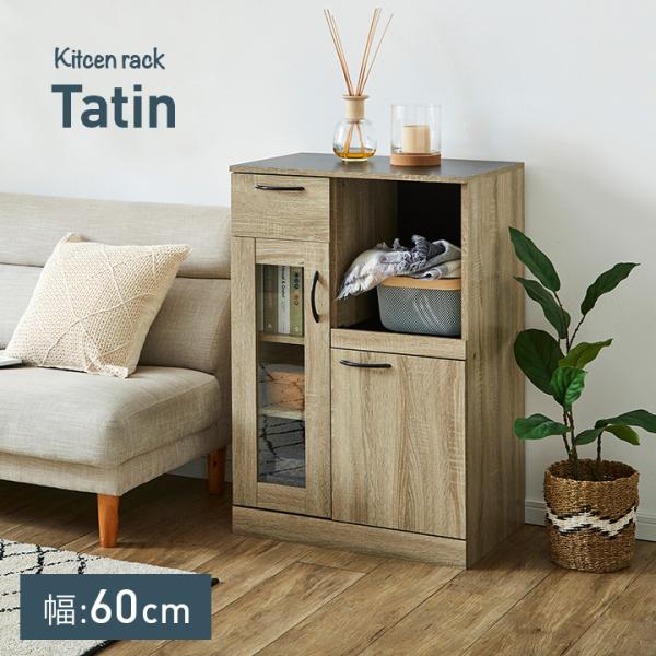 キッチン 収納 ラック ストッカー 棚 食器棚 台所 ロータイプ コンパクト 引き出し収納 棚 シンプル レンジボード キッチンラック 幅60cm Tatin(タタン)