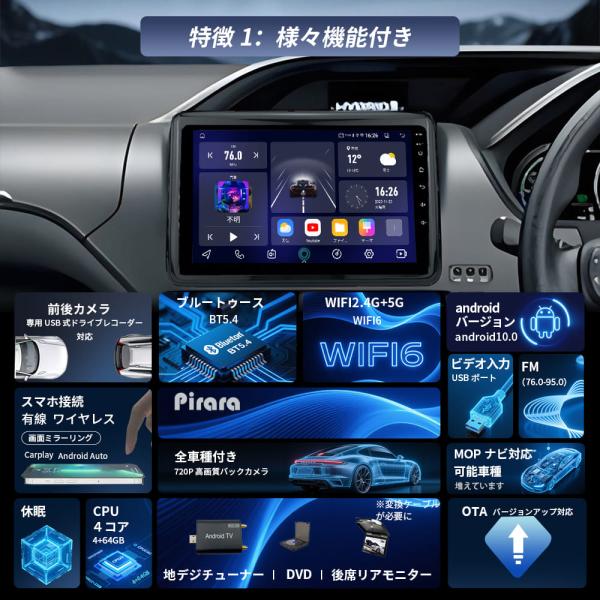 【Carplay/Android Auto対応と画面ミラーリング機能】【AHD(720P)リアカメラ付属】綺麗な画質
