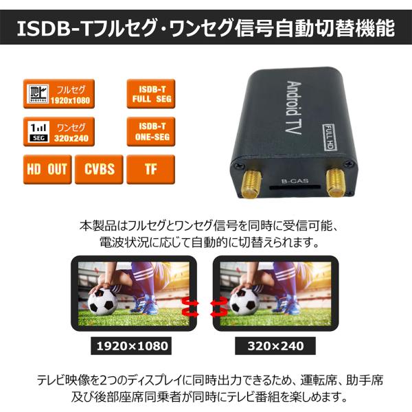 【ISDB-Tフルセグ・ワンセグ信号自動切替機能】【1080Pハイビジョン出力、高画質、高精細度】【タッチパネル対応、操作は簡単】 【時速150kmまで正常に受信可能】 【小型・軽量で置き場所に困らない】 【車載の液晶表示ユニットや配線を分解せずに取り付けることができる】