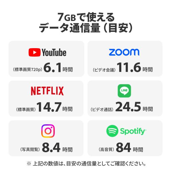 ● 無駄のない7GB/月だから、日々の音楽やSNSも賢く楽しめる!月末の低速化が心配な方にもおすすめ!1日あたりの制限もなし