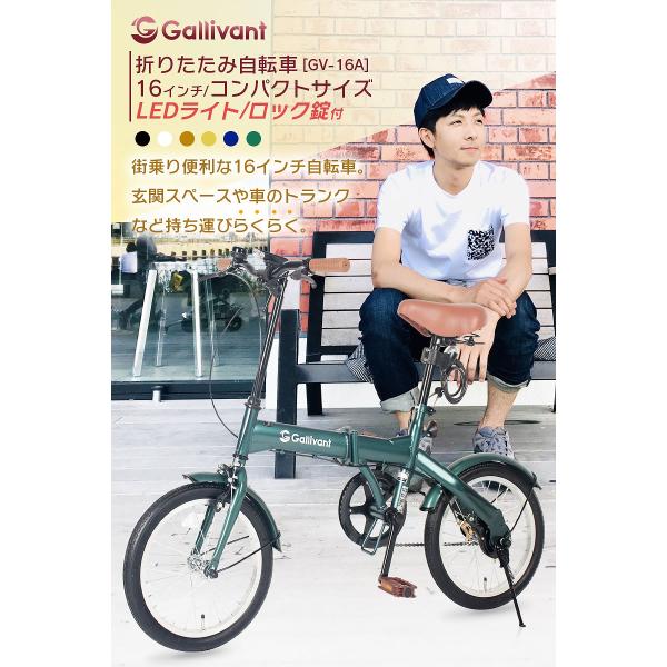 折りたたみ自転車 16インチ コンパクト フロントライト カギ 玄関先 車載 軽量 新生活 通勤 通学 シティサイクル 買い物 街乗り【 GV-16A 】