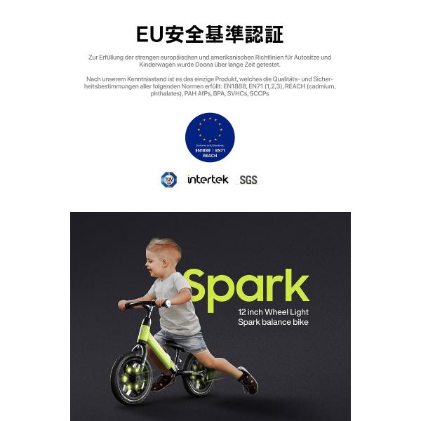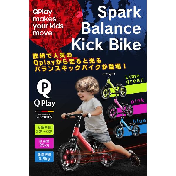 子供用自転車 ペダルなし 走るとLEDが光る Q play Spark スパーク バランス キック バイク ランニングバイク 軽量 キッズバイク 2歳 3歳 4歳 5歳[SPARK]