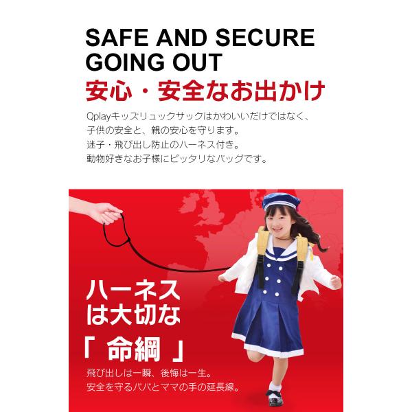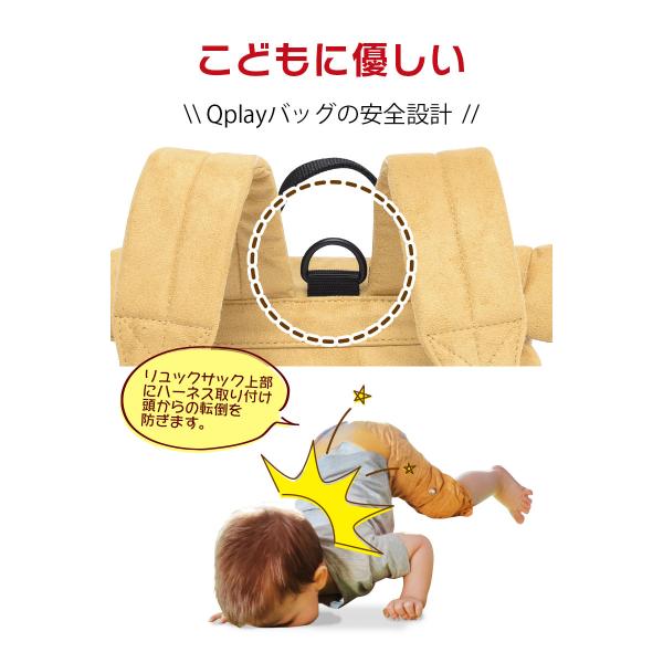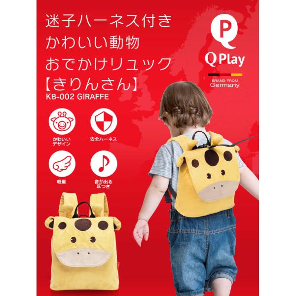 ハーネス付き 子供用 ベビーリュック バッグ リュックサック 迷子ひも かわいい デザイン 動物 転倒 防止 1歳 2歳 保育園 人気 誕生日 Qplay KB-002 きりんさん