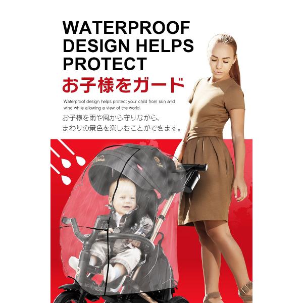 レインカバー Qplay 手押し三輪車 ベビーバギー 取り付け 防水 防風 防塵 花粉 飛沫 ブロック 雨よけ ホコリよけ 寒さよけ お出かけ RAIN COVER