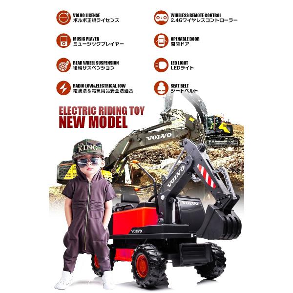 乗用玩具 乗用ラジコン はたらく車 VOLVO EXCAVATOR ボルボ ショベルカー 2WD 12V10Ah 後輪サス 電動ラジコンカー電動乗用玩具 乗用ラジコンカー