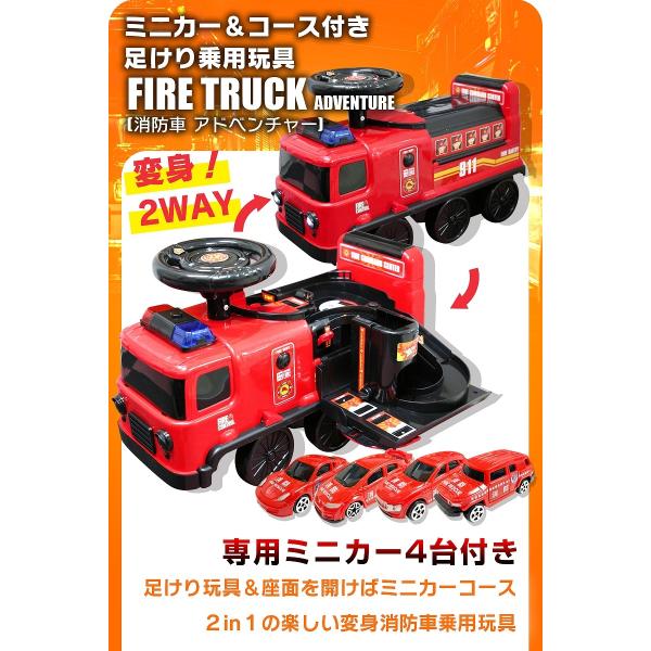 ミニカー&コース付き 変身2WAY 足けり 乗用玩具 消防車 アドベンチャー FIRE TRUCK ADVENTURE 働く車 足けり乗用 乗用玩具 押し車